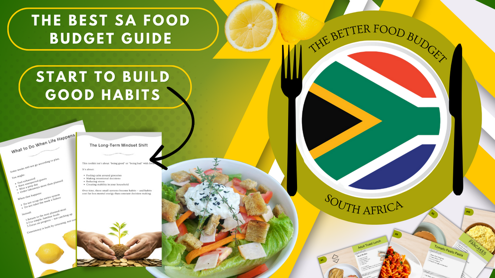 The Better Food Budget is a practical, short-term food budgeting system designed to help South Africans reduce grocery spend without dieting, restriction, or overwhelm. It combines simple meal planning, smart shopping techniques, and realistic household strategies to lower food costs while still feeding your family with familiar, accessible meals. This is not a nutrition program or a “perfect eating plan.” It’s a financial support tool for times when food prices feel unmanageable — helping you regain control, reduce stress, and create breathing room in your budget.